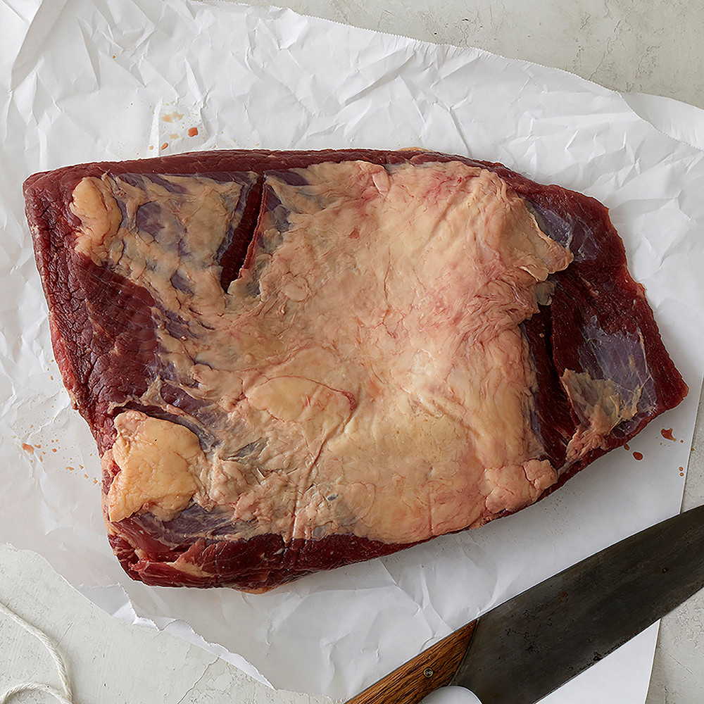 Cut from the lower chest of the cow, the brisket flat is a lean and flavorful piece of meat that benefits from slow, low-temperature cooking.