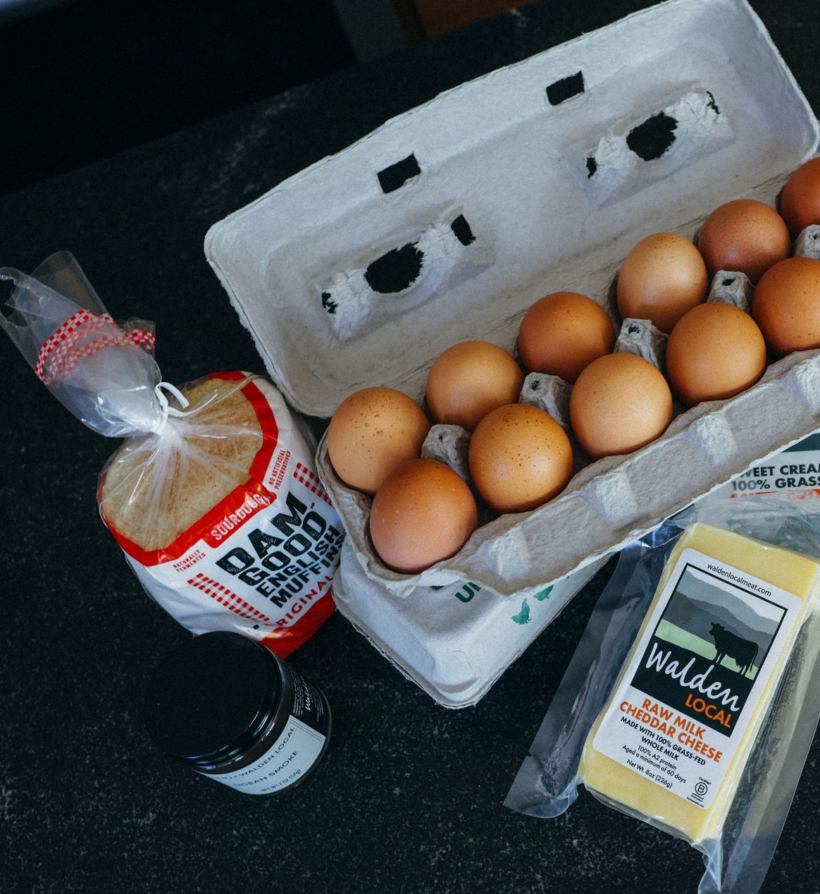 The Sunrise Breakfast Bundle is everything you need to build an incredible breakfast sandwich: our house-made ground Maple Breakfast Sausage (made from pasture-raised pork and real maple syrup), a dozen pasture-raised eggs, sharp, creamy grass-fed cheddar plus FREE fresh-baked Sourdough English Muffins. $45 retail value.